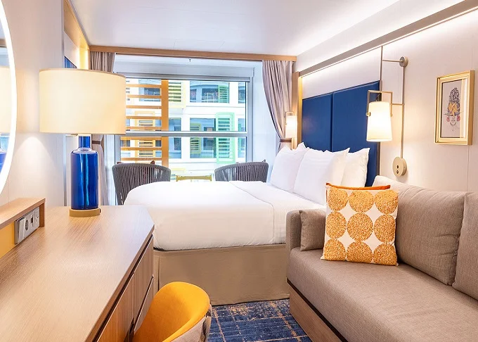 H5 - Kajuta s balkónom Surfside Family 18 m² + 4,5 m² balkón s výhľadom na štvrť Surfside. 9. až 14. paluba vzadu. Max 4 osoby. 5 045 € 5 045 € za osobu