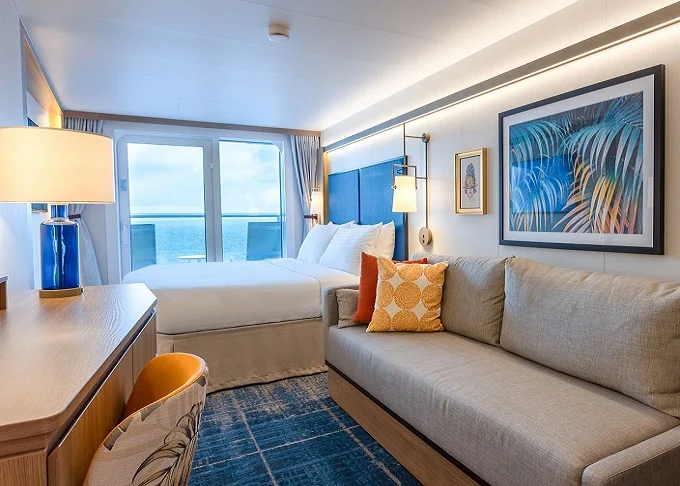 D3 - Kajuta s balkónom Ocean View 19 m² + 4,5 m² balkón s výhľadom na more. 7,8,12. paluba. Max 4 osoby. 7 492 € 3 746 € za osobu