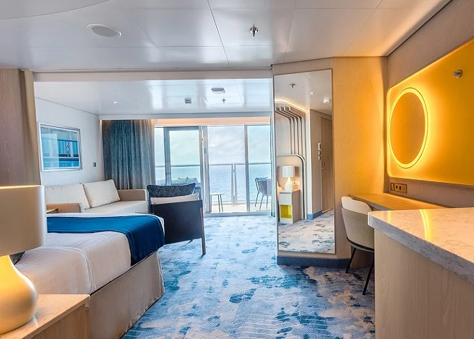 JY - Sky Junior Suite 30 m² + 7,5 m² balkón. 16, 17. paluba vpredu. Max 4 osoby. Výhody Royal Suite Sky Class. 10 888 € 5 444 € za osobu