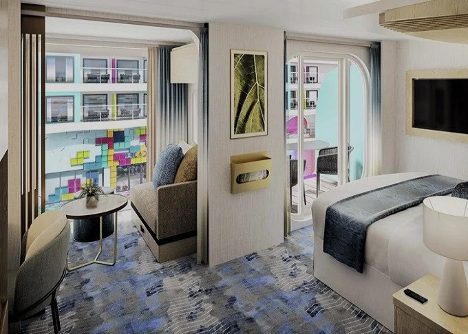 SF - Surfside Family Suite 25 m² + 5 m² balkón s výhľadom na štvrť Surfside. 9. až 11. paluba vzadu. Max 4 osoby (2 dospelé a 2 deti). Výhody Royal Suite Sky class. 8 002 € 4 001 € za osobu
