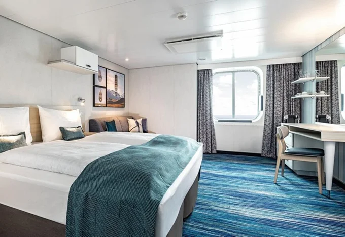 AUAO - Kajuta s oknom kat. A 17 m². Neotvárateľné okno. 3,8. paluba. Max 4 osoby. 6 096 € 2 032 € za osobu