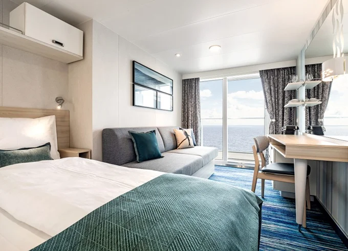 BAUR - Kajuta s balkónom PUR 17 m² + balkón 5-7 m². Max 4 osoby. Cenový model PUR. 3 490 € 1 745 € za osobu